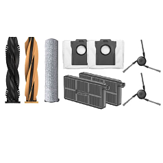 Комплектация: Набор двойных роликов против запутывания х 1, Боковые щетки х 2, HEPA-фильтр х 2, Мешки для мусора (с пластиковым отверстием) х 2, Накладки для швабры х 3, Моющий раствор AWH6 1 л х 1