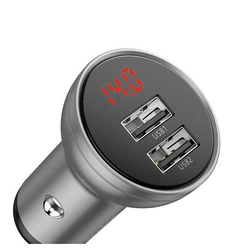 Автозарядка 2xUSB 24W (USB-A) QC 3.0 + Digital Display Серебряная Baseus