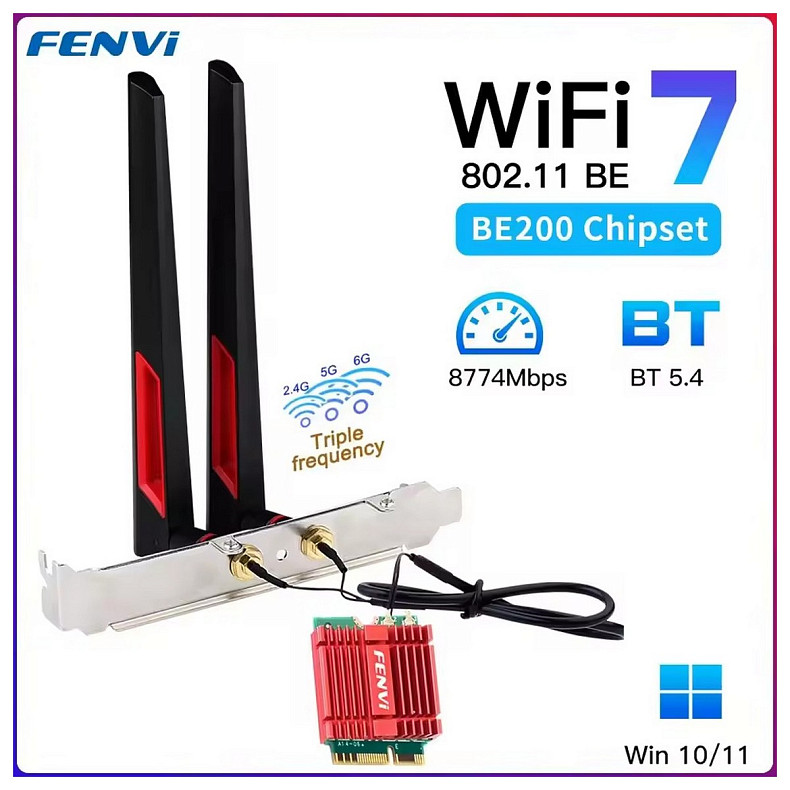 Беспроводной адаптер Fenvi FV-BE200NG Wi-Fi 7, Bluetooth 5.4 Tri-band 2.4G/5G/6GHz