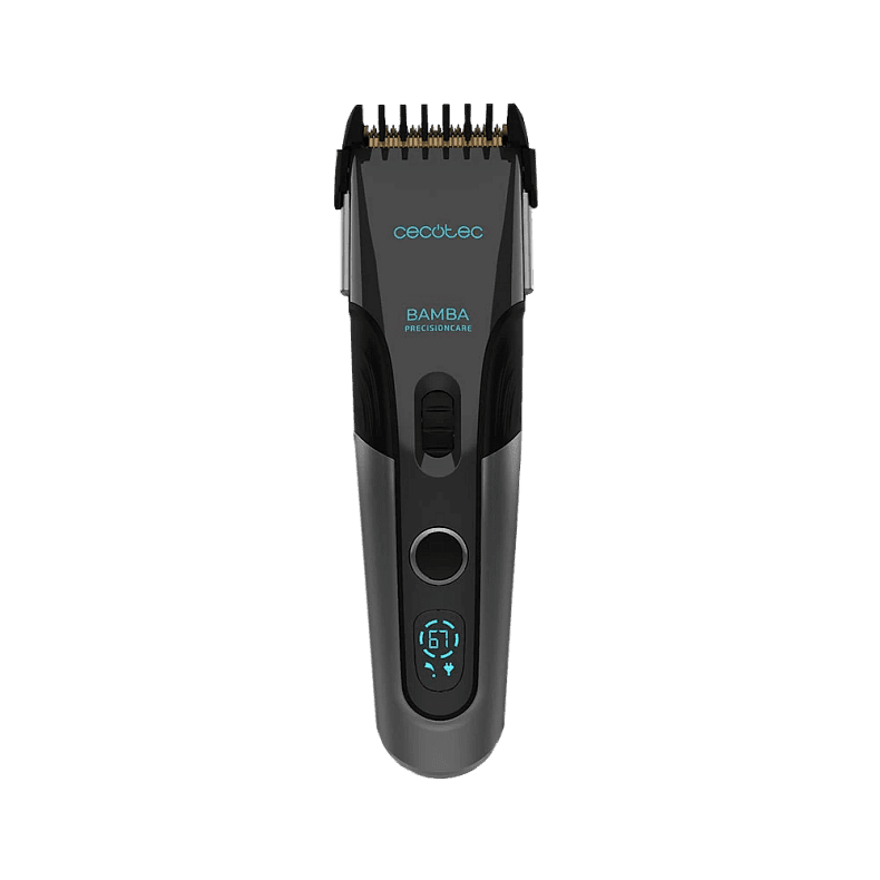 Машинка для стрижки волос и бороды Bamba PrecisionCare Titanium от CECOTEC отличается качественными лезвиями, технологичностью функций и разнообразием аксессуаров для максимально точной стрижки и комфортной эксплуатации. Кроме качественных деталей, машинка имеет стильный дизайн. Делайте профессиональные стрижки, не выходя из дома.