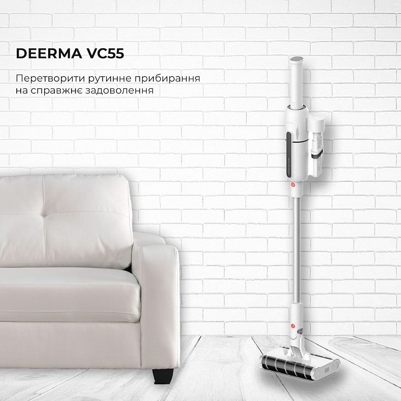 Громоздкие и неповоротливые пылесосы? Нет, Deerma VC55 сразу же найдет общий язык с интерьером вашей квартиры! Он не будет таранить ножки стульев и врезаться в мебель, ведь его напольная щетка рекордно гибкая. Будто танцуя по поверхности, насадка легко скользит, подходит вплотную к плинтусам и огибает препятствия, доставая мусор в самых тесных углах. Кстати, наклоняться или передвигать мебель теперь тоже не придется. Щетка достаточно тонкая, а улучшенное соединение с трубкой позволяет положить пылесос в линию с полом и очищать низкие места без преград.