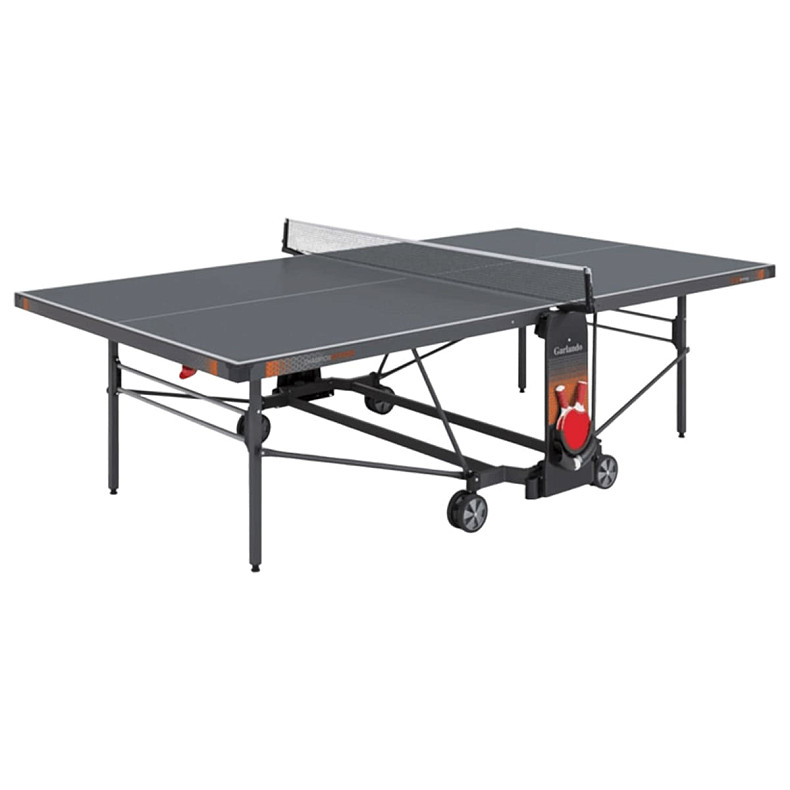 Теннисный стол Garlando Champion Outdoor – всепогодный теннисный стол, предназначенный для игры в настольный теннис как на улице, так и в закрытых помещениях. Игровая поверхность выполнена из меламиновой плиты толщиной 3 мм с металлической кромкой по периметру. Модель очень устойчива, благодаря конструкции с квадратными ножками из металлических трубок 30х30 мм и двойным горизонтальным соединительным планкам. Четыре сдвоенных транспортировочных колеса диаметром 128 мм вращаются на 360°, что существенно облегчает перемещение стола при необходимости. Теннисный стол оснащен сеткой и держателем для ракеток и мячей. Компактное устройство автоматического закрывания минимизирует отягощение после того, как настольный стол сложен, а система ECS позволяет разблокировать столешницы одним движением максимально быстро и безопасно.