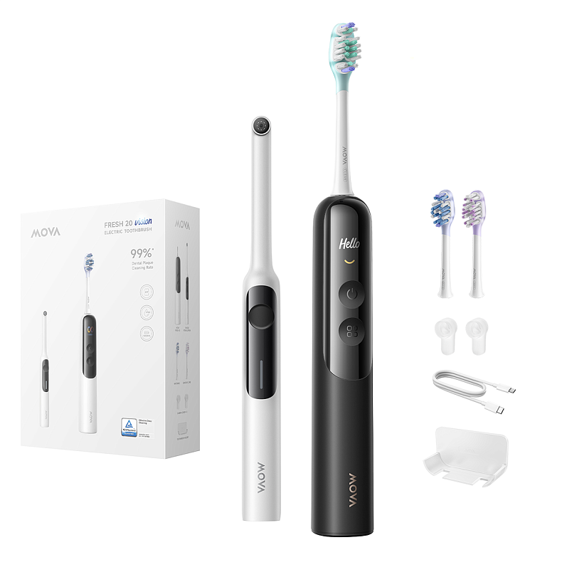 Додаткові характеристики | Голосові підказки через кісткову провідність, Персональні звіти та теплові карти нальоту, Додаток MOVAhome з аналітикою, Система візуалізації нальоту з ендоскопічною камерою 300K, Подвійне очищення Sweep & Sonic, Двосторонній датчик тиску |