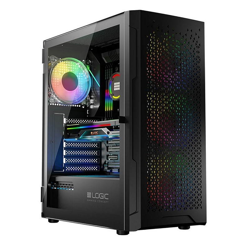 Корпус LogicConcept ARAMIS (AT-ARAMIS-10-0000000-0002) компактного размера поддерживает материнские платы ATX, mini-ITX и Micro-ATX. Он позволяет сэкономить полезное пространство и построить компьютерные системы разной производительности. Корпус предлагает много вариантов для расположения внутренних компонентов и организации эффективного охлаждения, поэтому все равно хорошо подойдет как для работы, так и для развлечений. Фронтальная панель корпуса LogicConcept ARAMIS изготовлена из сетки, что обеспечивает лучшее обращение воздуха. Небольшие отверстия на месте установки блока питания также улучшают обороты воздуха внутри корпуса. Боковая панель из закаленного стекла открывает великолепный обзор установленной системы. Ваши игры будут еще динамичнее благодаря A-RGB подсветке вентиляторов, которую можно изменять с помощью кнопки RESET на панели корпуса. Оптимизированный механизм крепления боковой панели позволяет легко открывать ее, что делает обслуживание системы чрезвычайно простым. Корпус LogicConcept ARAMIS – это замечательное решение для игровых ПК. Он поддерживает видеокарты длиной до 340 мм и рассчитан на установку процессорных кулеров высотой до 155 см. В корпус установлено четыре 120 мм вентилятора – три спереди и один сзади. Передние вентиляторы можно заменить на более крупные, диаметром 140 мм. Также есть возможность установить два вентилятора диаметром 120 или 140 мм на верхней панели. Кроме того корпус адаптирован под монтаж систем жидкостного охлаждения. Используйте корпус LogicConcept ARAMIS и складывайте компьютеры для обучения и работы. Он оснащен кронштейнами для установки семи карт расширения PCIe. Устанавливайте 5 дисков SSD и 1 HDD или 4 SSD и 2 HDD. Находящиеся в верхней части корпуса LogicConcept ARAMIS порты USB Type А и аудиопорты обеспечивают простое подключение к нему всего необходимого оборудования. Пыльные фильтры под блоком питания, на передней и верхней панелях предотвращают попадание пыли внутрь корпуса, что позволяет продлить срок службы.