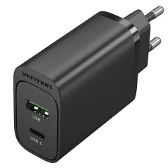 Зарядний пристрій Vention 2xUSB 38W (USB-C+USB-A) PD+QC3.0 black