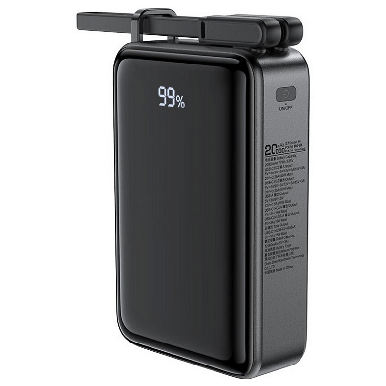 УМБ Acefast 20000mAh 67W PD3.0 20В/3.35A Type-C, USB-A, с cable, Li-ion M4 Black